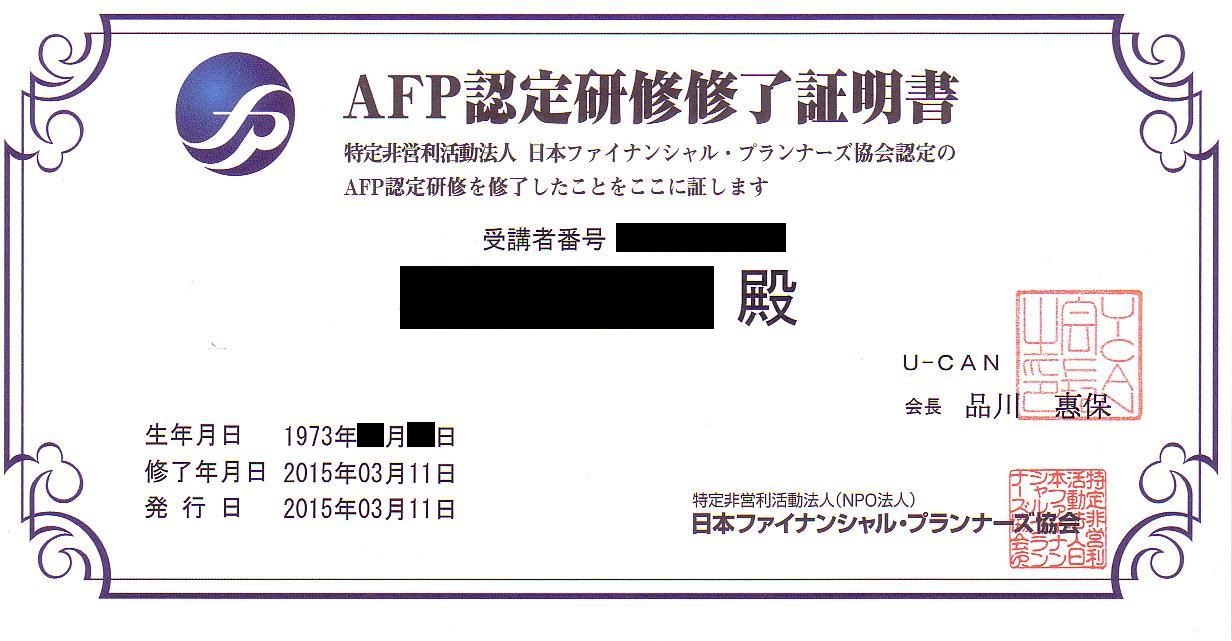 AFP認定研修修了証明書